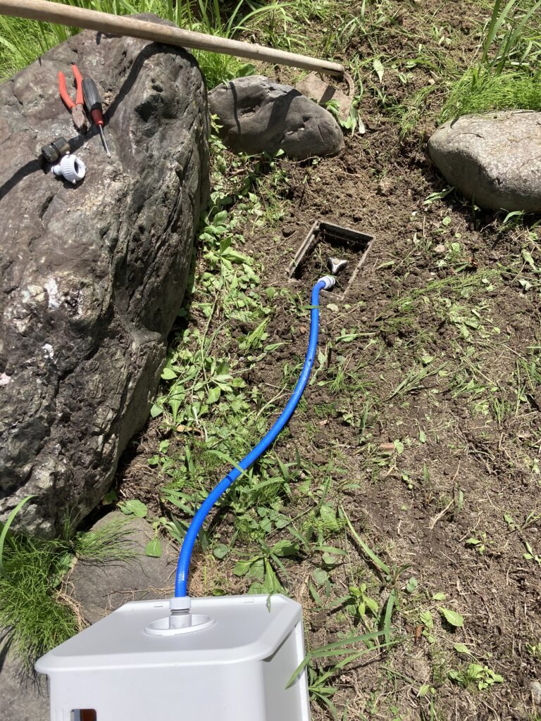 長い間すっかり土に埋もれていた水栓を掘り当てて、外水道を確保したことで、ホールのエントランス付近に水をまいて、デッキブラシでゴシゴシとこすってみたり、
