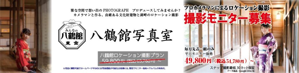 また、この文化財建物で人生の節目に想い出の写真を撮っていただく『八鶴館写真室』という事業を手掛けています。