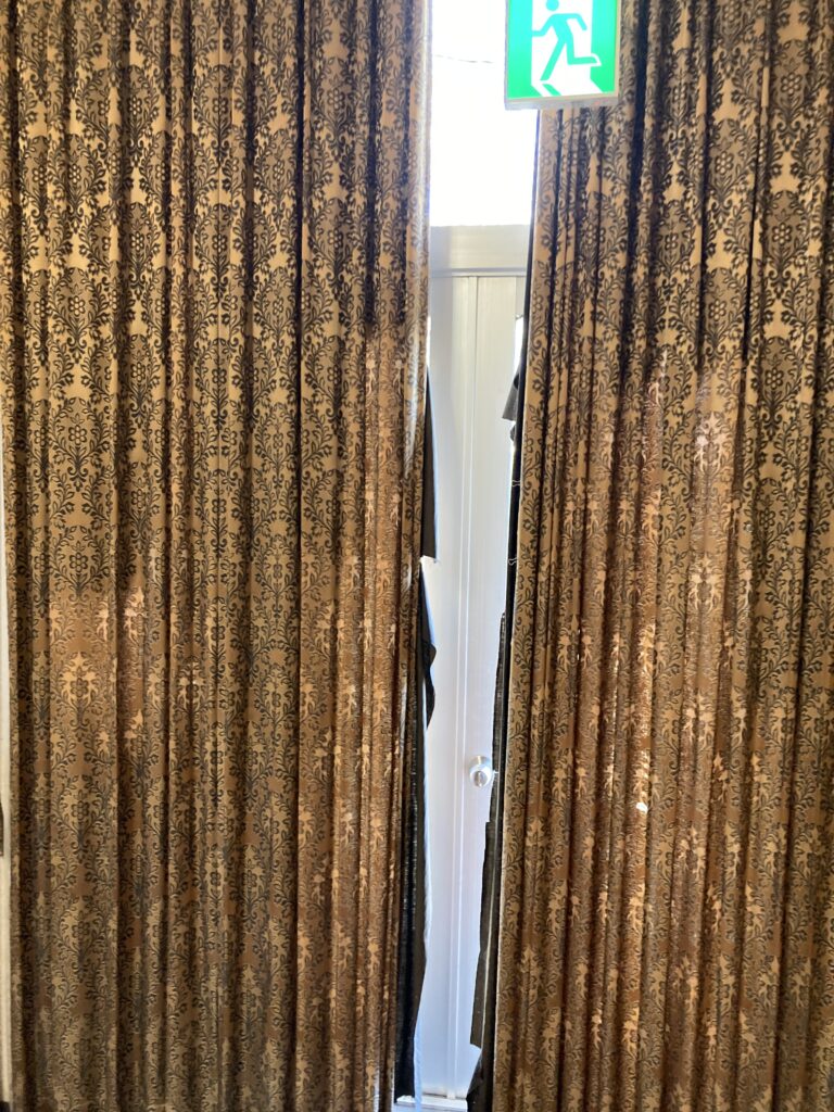 しかし、お客さんを迎えるための肝心なホールがそれにしてもボロい。中でもカーテンのボロさが全体のボロさに拍車をかけています。