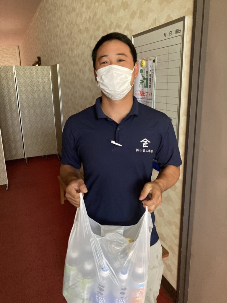 お掃除ボランティアの話を聞いて、近所の工務店の若社長がドリンクの差し入れを持ってきてくれました。