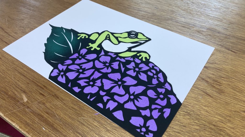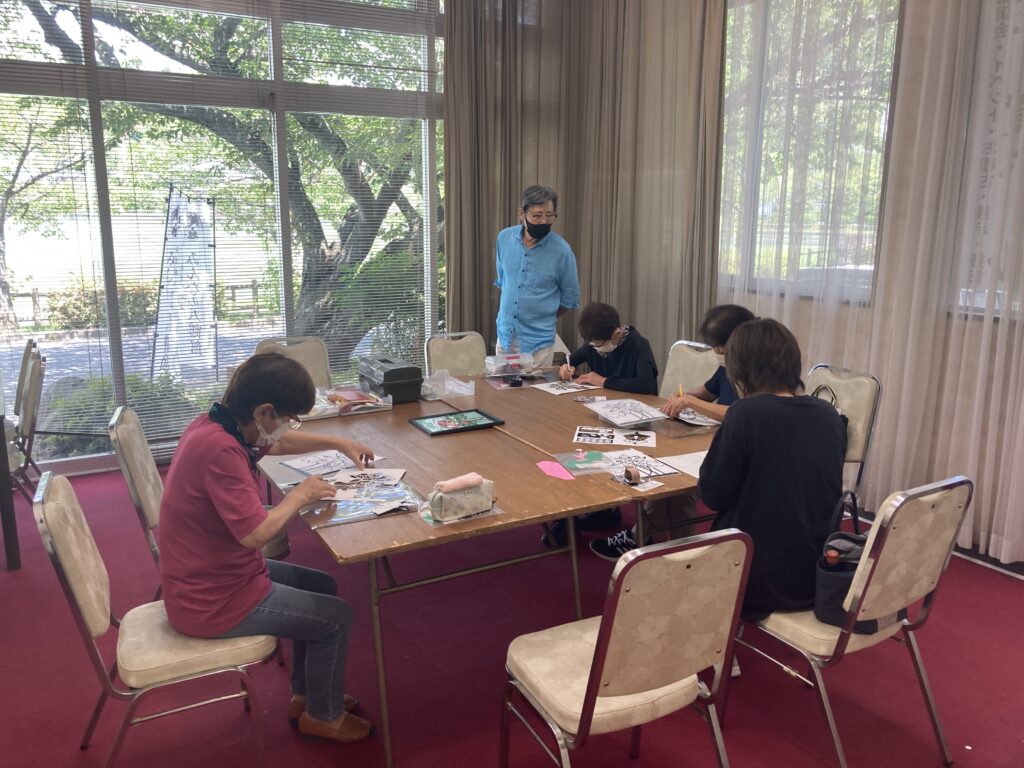 あじさいやハスなど、八鶴湖畔で見られるものを題材にして取り組んでいただいてます。いつか八鶴館建物も作品になるといいですね。