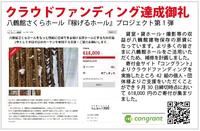 令和6年8月~10月、さくらホールのカーテンを新調するためのクラウドファンディングを実施いたしました。